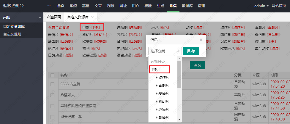 1,今天教大家怎么添加采集自定义资源库;进入后台我们随便以某资源站为例,接口可以到你要采集的网站上获取就可以了 一般都在网站的帮助中心:添加方法如下图(添加后进行测试不成功需要填写附加参数 &ct=1)