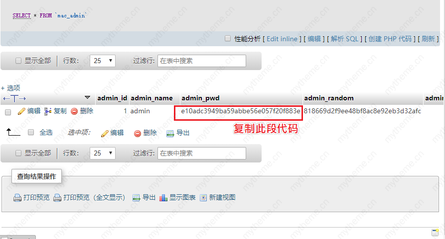 2,我们使用mysql管理工具(如phpmyadmin)登陆到数据库,打开表单mac_admin,可以看到一下结果: