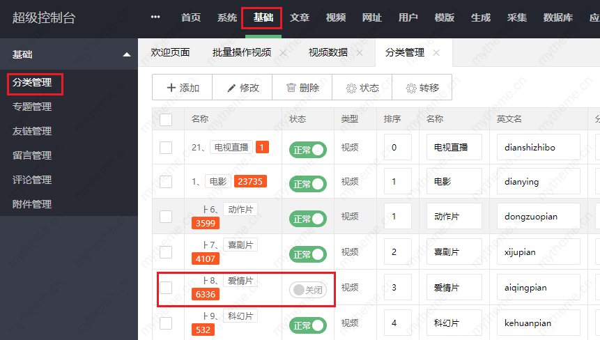 2,隐藏某些:视频->视频数据勾选要隐藏的视频,然后点击“状态”选择未审核隐藏状态然后保存即可,这里就只修改你勾选的视频为隐藏状态。