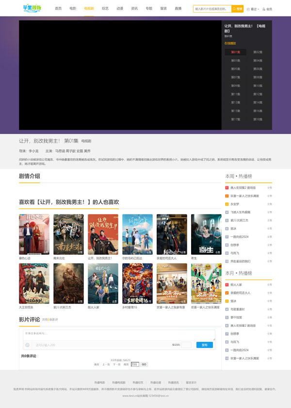 这款模板是在之前发布的白色影视网站自适应模板7号基础上修改而来,最大区别是对首页进行了升级,在保留原有设计配色基础上,新增了首页核心栏目分类,以及资讯版块,提高用户体验同时,改善页面文本比例,优化SEO原创性。