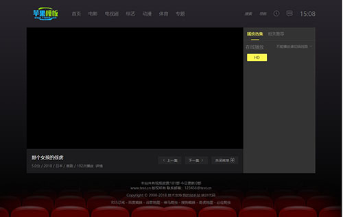 经典黑色简约风格、删除了侧栏设计,最大化凸显影视内容。页面结构简单,只有首页、列表、播放页,无详情页。该模板为商业模板,原价299元,虽是给电影站、X站做,但是细节拉满,其播放页给用户以电影院,身临其境之感。