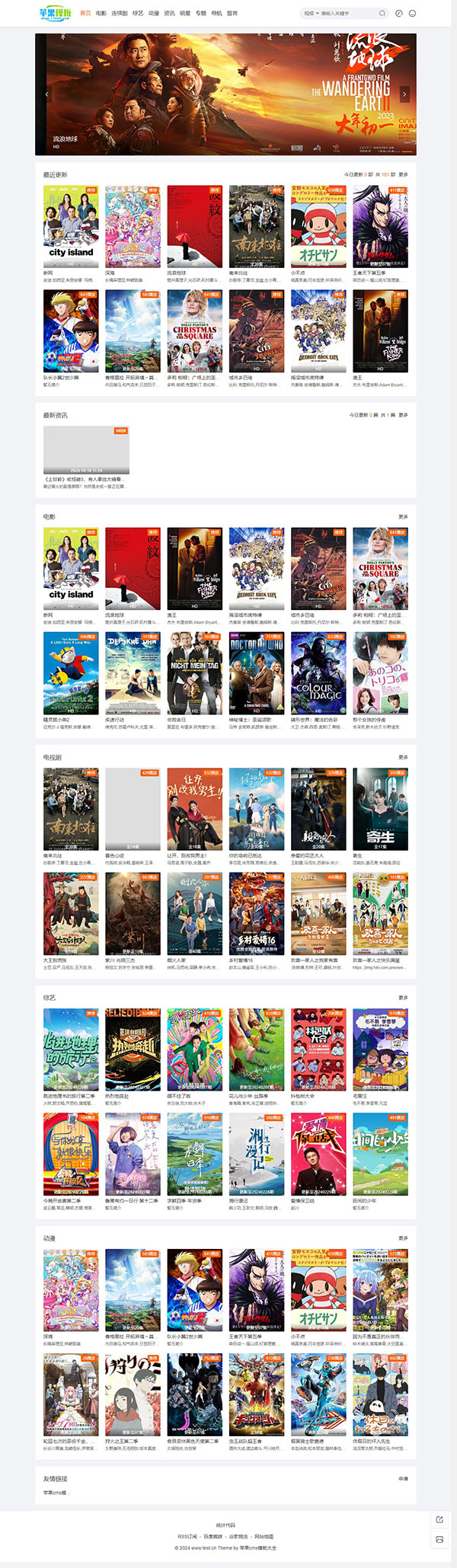 一款白色高端影视模板,值得称赞的是,该模板还专门为资讯预留了版面,以便更好提高页面原创性,页面布局合理,浏览体验比较好。