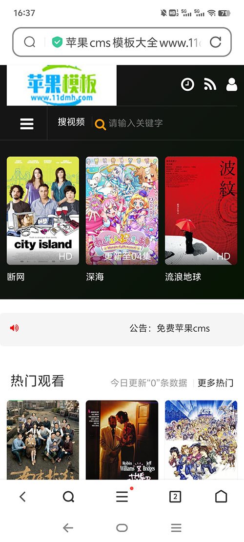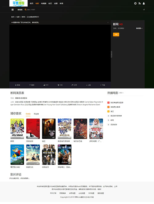 经典黑色简约设计,兼容pc、wap自适应访问,特别适合于影视网站,内容页支持下载功能,播放页支持播放器跟随移动,推荐模板!