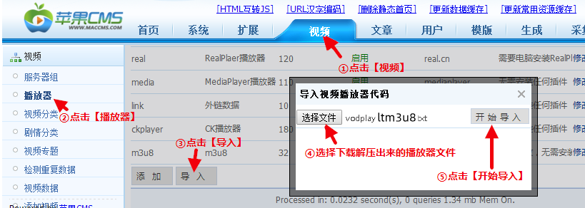 3、点击“导入”导入刚刚下载的播放器文件就可以了。