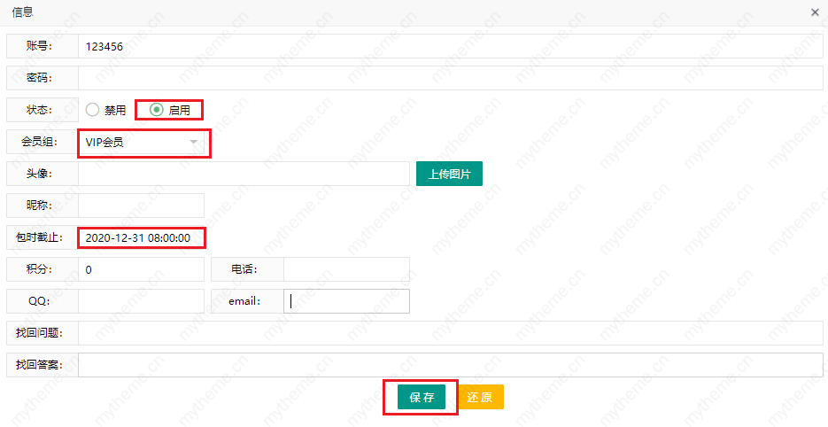 2,进入到苹果cms会员编辑界面:
