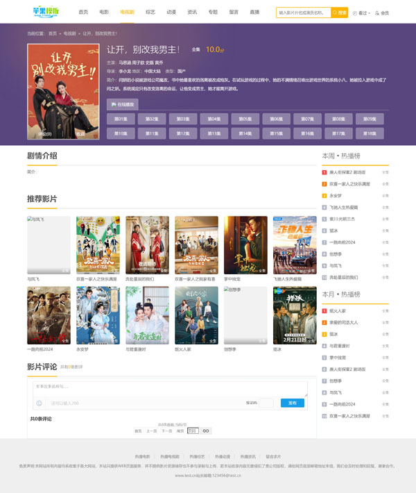 这款模板是在之前发布的白色影视网站自适应模板7号基础上修改而来,最大区别是对首页进行了升级,在保留原有设计配色基础上,新增了首页核心栏目分类,以及资讯版块,提高用户体验同时,改善页面文本比例,优化SEO原创性。