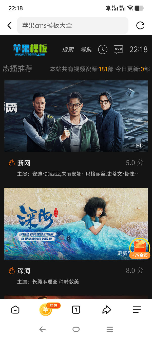 这次模板升级的目的,是为了适配于影视站,所以围绕详情页进行了比较多升级,如果你希望是首页、分类、详情、播放的层级结构,这款简约黑色样式,一定不要错过!代码支持pc、wap自适应访问,推荐模板!