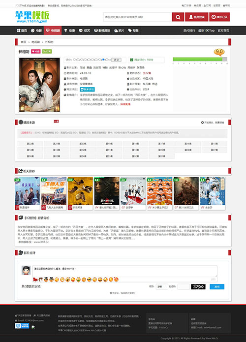 该模板是针对苹果cms8设计,虽然苹果cms8是一款老程序,但是作为影视系统的核心功能是齐全的,而且从SEO角度考虑,避免大多人选择的苹果cms10,可以尽量让你的页面及程序独特性更强。